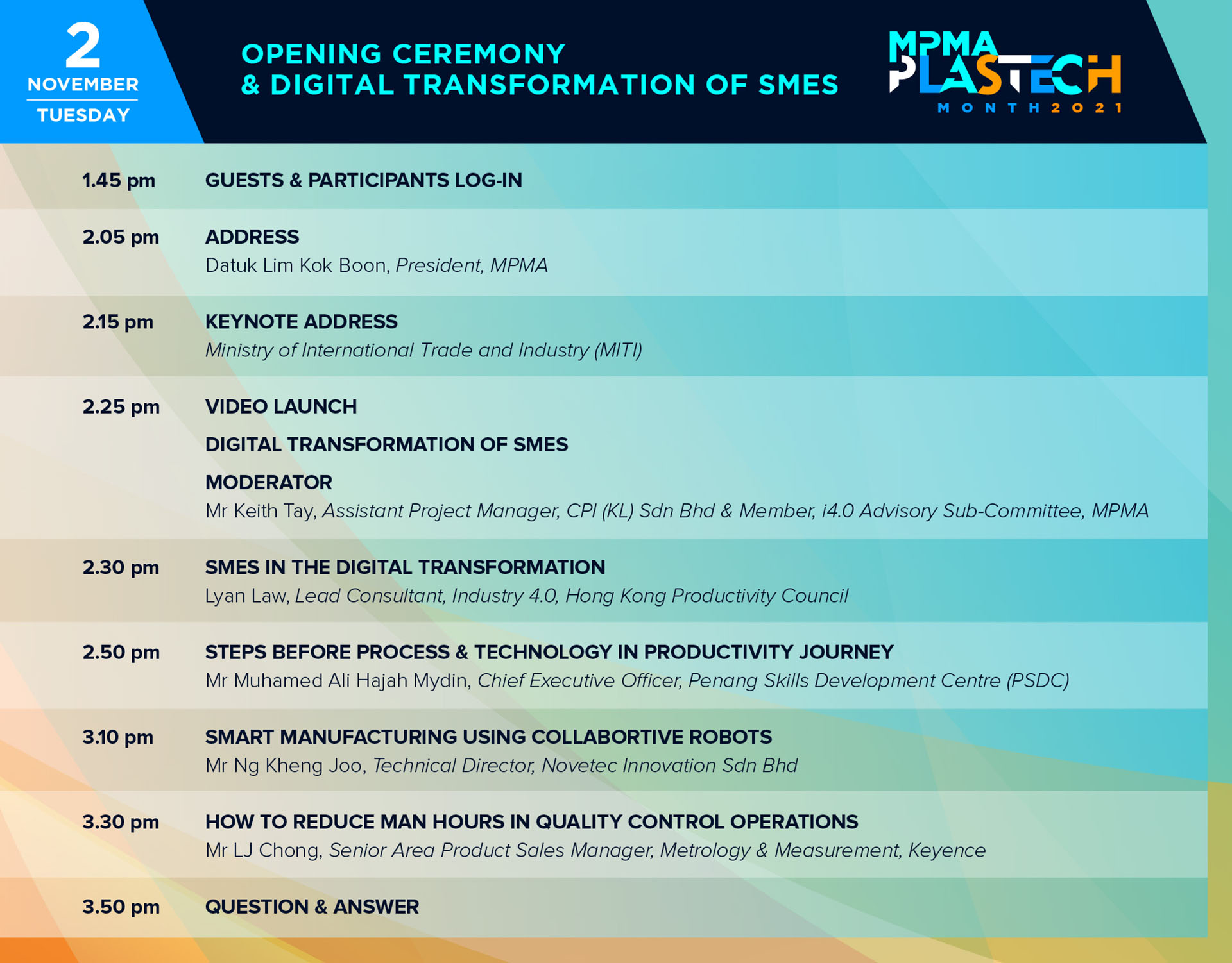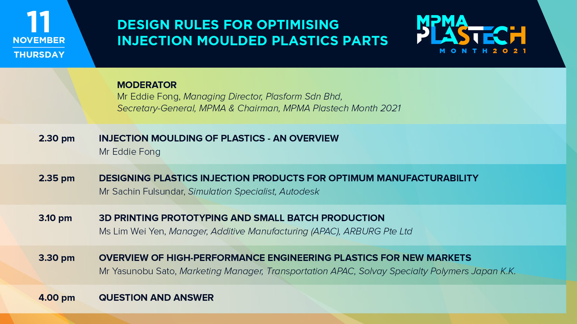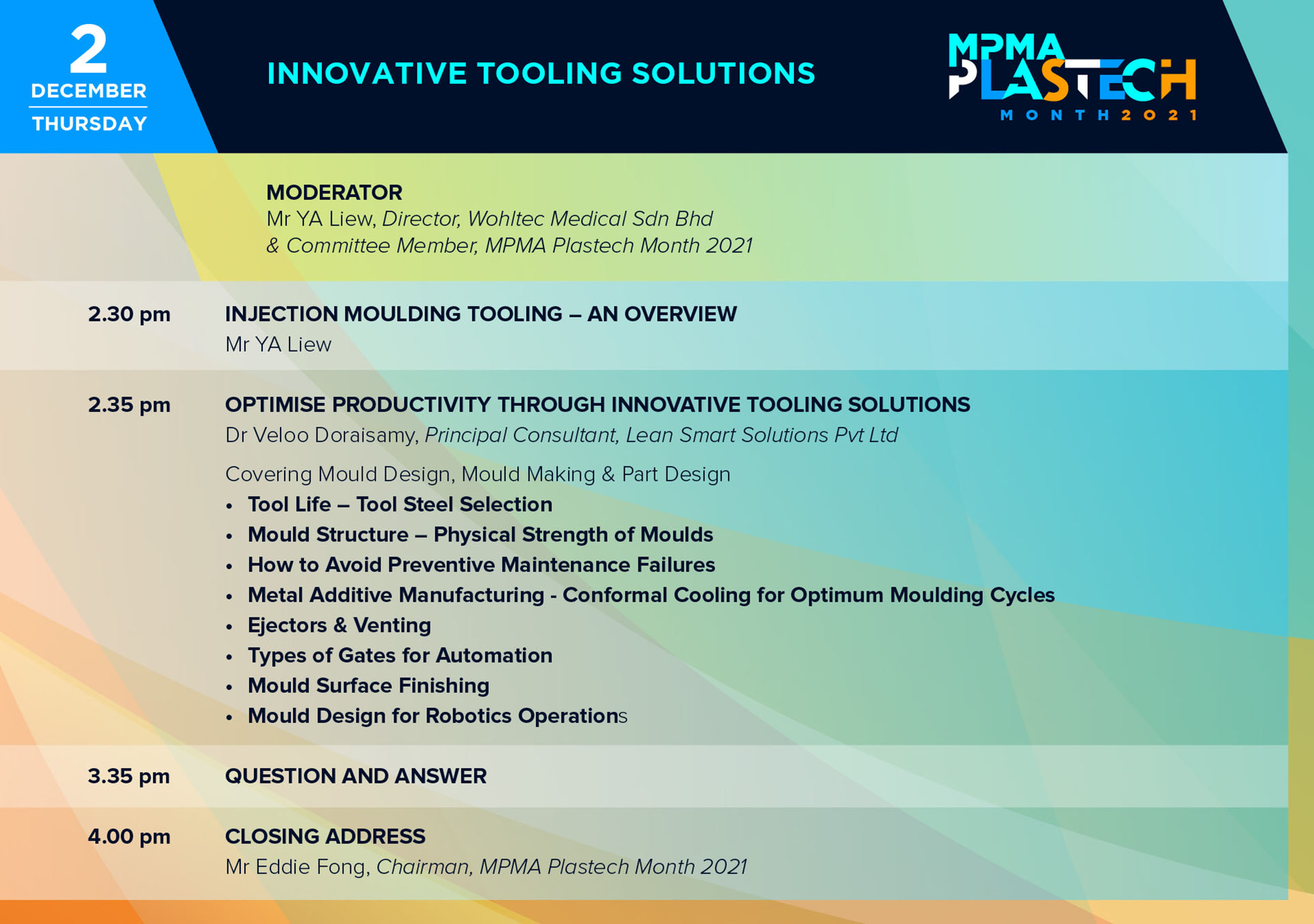 EDDIE FONG has been in the plastics industry for 41 years. His forte is in injection moulding and related technologies. He is currently the Managing Director of an SME manufacturer named Plasform Sdn Bhd. Plasform is an SME company engaged mainly in the parts and components manufacture and offers tailored plastics engineering solutions to its customers in the E&E, industrial, automotive and special applications sectors. It is mainly engaged in injection moulding and related production processes. He is also the Secretary-General of the MPMA and Chairman of the MPMA Human Resource Development Committee.